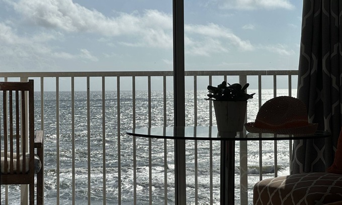 Welcome to our fantastic 5th-floor oceanfront studio just steps to the ocean and in the heart of the world's most famous beach... Daytona Beach! Enjoy miles of sand. Our studio features a spacious balcony. A gym, BBQ grills and more. Wifi and TV for entertainment in the room. If you're looking to learn how to surf or if you're here for a good time this summer you're in the heart of the fun. Less than 1 mile from all of the action here in Daytona Beach.