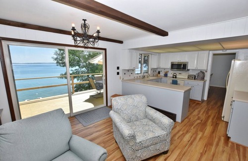 Direct waterfront on West Grand Traverse Bay! Overlooking deck is located in Suttons Bay. Direct waterfront on West Grand Traverse Bay! Overlooking deck provides accommodation, featuring Air Conditioner, TV, Balcony/Terrace, among other amenities. This House features Air Conditioner, TV, Balcony/Terrace, to make your stay a comfortable one.