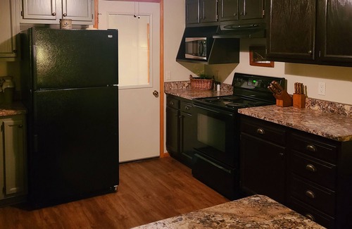 Ms. Becky’s Bungalow is a fully furnished two-bedroom home conveniently located on the main highway through town. This cozy retreat is pet-friendly, non-smoking, and all on one level for easy access. With a queen bed in one room and two twin beds in the other, it comfortably sleeps four guests. A couch and air mattresses are also available for additional guests.
