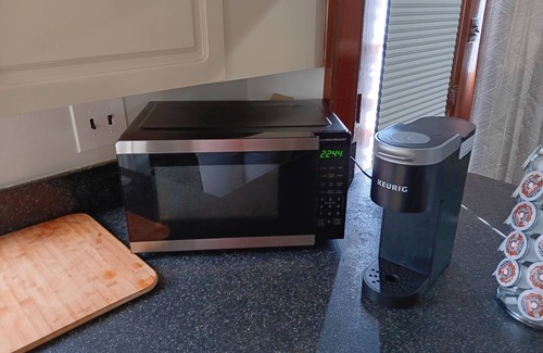 The fully stocked kitchen, complete with a stove, oven, refrigerator, microwave, and coffee maker, allows you to prepare delicious meals during your stay. Essentials like 1.5 bathrooms, towels, basic soaps, an iron and board, and climate control with air conditioning and heating ensure your comfort.