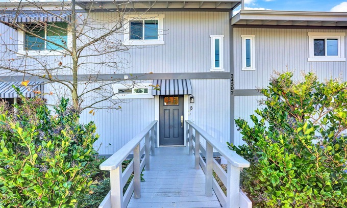 Dana Point STR Permit #STR23-0115. Escape to serenity and indulge in a delightful getaway at this cozy and charming unit. Nestled in the heart of Dana Point, this retreat offers a weekend, week, or month-long respite filled with endless possibilities. Discover the allure of the City of Dana Point, boasting world-class resorts, premier surfing spots, and a vibrant Lantern Village with its array of restaurants and shops. Immerse yourself in the tranquility of Dana Point Harbor and embrace the myriad of activities this enchanting town has to offer. Step into this inviting unit and feel instantly captivated by its charm. Cross the bridge leading to the entrance, where the soothing sound of flowing water sets the tone for relaxation. Inside, the upgraded and impeccably maintained interior boasts a neutral palette that soothes the senses. Unwind in the generous living room adorned with a cozy brick fireplace, perfect for warming the soul on cooler evenings. The modern kitchen beckons culinary adventures with its stainless-steel appliances and comprehensive array of amenities, ensuring that every meal feels like a home-cooked delight. Natural light floods the space, creating an inviting ambiance throughout. Retreat to the spacious bedroom featuring wall-to-wall closets, a plush bed, and even a glimpse of the ocean—a tranquil sanctuary for rest and rejuvenation. For added convenience, the living room offers a comfortable sofa bed, ideal for accommodating additional guests. Step outside to the small back balcony, where ocean breezes beckon you to unwind and soak in the sun. A sizable front patio provides ample space for relaxation, complete with cozy seating, a private BBQ, and the soothing melody of a babbling creek—a true oasis of calm and comfort. Experience a unique "home away from home" like no other, where every moment is infused with tranquility and charm. Whether you're seeking a brief escape or an extended retreat, this enchanting unit promises an unforgettable stay amidst the beauty of Dana Point.