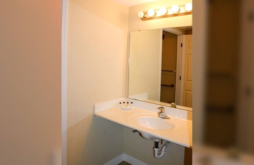 The Glacier Suite 113 is a first floor suite. It is divided by the bathroom into a living room and sleeping area. The sleeping area is furnished with a king size bed and the living area has a full sleep sofa for that extra guest or the kids. The suite is equipped with all the amenities for an extended stay including a small refrigerator and microwave.
