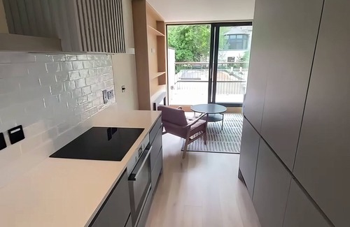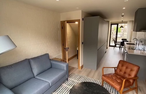 Inside, the apartment features thoughtfully designed living spaces that offer both functionality and relaxation. With a warm, inviting ambiance and contemporary finishes throughout, it's the ideal place to unwind after a day exploring the city.