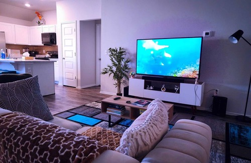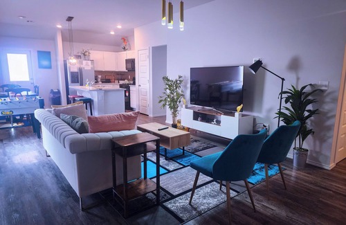 Discover this stylish 3-bedroom home, perfect for a comfortable stay. Carefully designed with custom wall art and cozy mid-century furnishings.