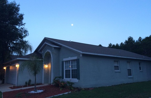 Our vacation home has 4 bedrooms, 2 1/2 baths, with office/den. Our home is in a very quiet neighborhood. The patio and pool can be relaxing after a busy day at the parks. We are located close to many restaurants, fast food, shopping centers and Grocery stores, plus A Super Walmart.