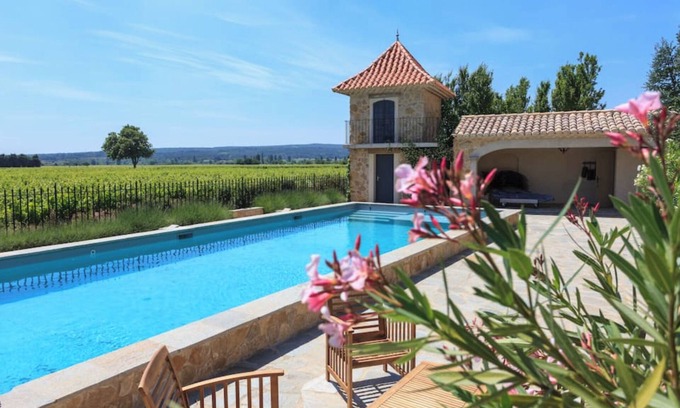 DiWine Provence, Wine estate, Heated swimming pool 15x5m is located in Sainte-Cecile-les-Vignes. DiWine Provence, Wine estate, Heated swimming pool 15x5m provides accommodation, featuring Ocean View, Balcony/Terrace, Sports/Activities, among other amenities. This House features Ocean View, Balcony/Terrace, Sports/Activities, to make your stay a comfortable one.