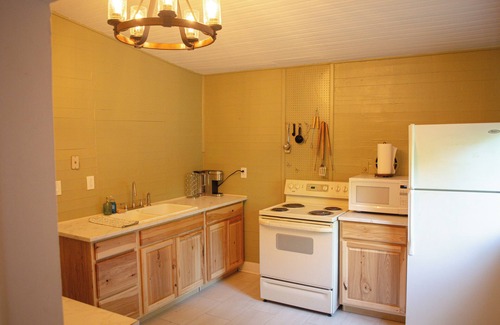 Accommodating up to four guests, Holler Hideaway features two inviting bedrooms—a queen and a full-size bed—alongside a well-appointed full bathroom and a fully equipped kitchen. All linens and towels are thoughtfully provided for your convenience.