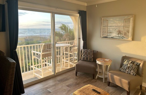 You will enjoy direct Ocean views and amazing sunrises from the balcony and even the couch...!! Located in the heart of Downtown Cocoa Beach, lies this hidden gem!