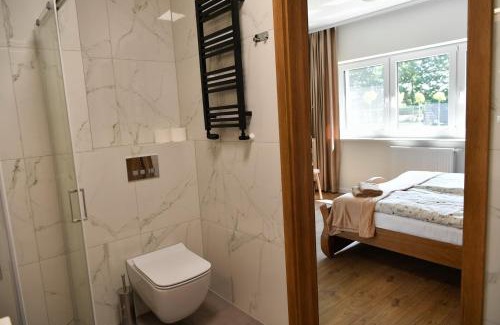 Dobranocka Noclegi - blisko Energylandia enjoys a location in Spytkowice, 27 miles from Town Hall Tower and 27 miles from Main Market Square. 18 miles from Auschwitz and 27 miles from National Museum of Krakow, the property features a garden and barbecue facilities. The farm stay offers rooms with air conditioning, free private parking, and free Wifi. Rooms are equipped with a coffee machine and a private bathroom with a shower and free toiletries, while certain rooms also offer a fully equipped kitchenette. At the farm stay, units are equipped with bed linen and towels. Guests can also warm up near the outdoor fireplace after a day of cycling. Cloth Hall is 27 miles from the farm stay, while St. Mary's Basilica is 28 miles from the property. John Paul II International Kraków–Balice Airport is 18 miles away.