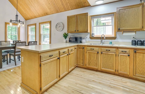 Tucked in the peaceful woods along Higgins Lake, this Roscommon vacation rental blends rustic charm with thoughtful amenities. Launch your boat from the community dock or stretch out on the shoreline, then head back to the 1-bed + loft, 1-bath cabin for a sauna session, barbecue, and game of horseshoes. Discover Northern Michigan’s picturesque lake country and book this private spot for your next retreat!