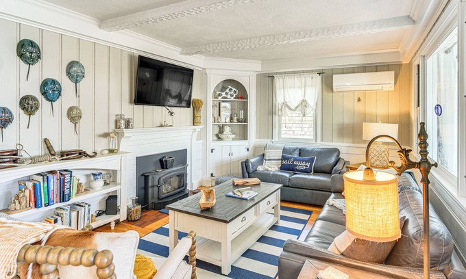 Start your mornings watching the sun break over the water when you stay at this 2-bedroom, 1-bath cottage. This bayfront vacation rental in Bristol, RI, is a picturesque New England getaway featuring classic coastal decor, a fully equipped kitchen where you can cook and enjoy the view, and easy water access right from the backyard! Seafood spots and local shops are all within 3 miles.