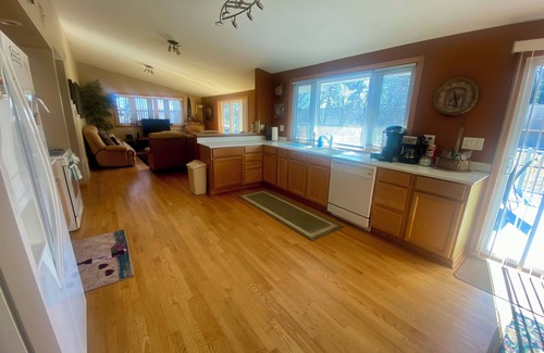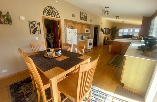 If you're looking to do some shopping, take a 10 minute drive to downtown Lake Geneva and there are many restaurants to choose from. The area also boasts ziplining, hot air balloon, local summer concerts, magic shows, horseback riding, and boat cruises. So treat yourself and your family, bring your pooch too! Our 1/3 acre yard is fully fenced and equipped with a brand new Rainbow play center for all to enjoy. Take your best shot at our adjustable basketball hoop. There are bikes, yard games, and beach toys in the shed for your enjoyment.