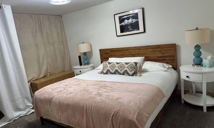 Enjoy Harbor Days while staying in this cute duplex in the heart of the quaint village of Elk Rapids. Located 1 mile from downtown, this one-bedroom with a king bed, private patio and large shared yard with fire pit has everything you need for a comfortable, relaxing stay. The full kitchen and shared laundry room allows for making your long stay your own. Only 15min from Flint Fields, and a quick 20 minute drive takes you to Traverse City’s downtown. Close to all amenities the area has to offer. Parking on site for 2 vehicles. Dog-friendly for well behaved pups.