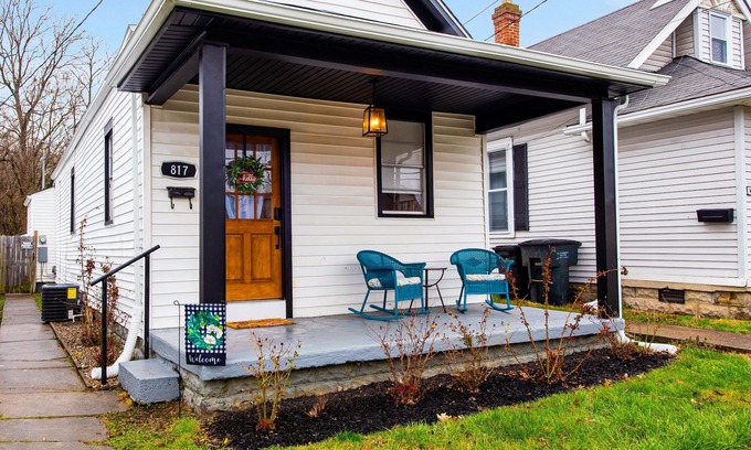 Dog-friendly 1920s charmer with bohemian finishes, firepit, central air, and W/D is located in New Albany. Dog-friendly 1920s charmer with bohemian finishes, firepit, central air, and W/D provides accommodation, featuring View, Child Friendly, Internet, among other amenities. This House features View, Child Friendly, Internet, to make your stay a comfortable one.