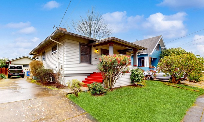 Walk to hip bars, cafes, donut shops, and restaurants on Fremont from this beautiful cottage in the heart of Portland's Beaumont neighborhood. Originally built in 1922, this PNW charmer features vintage Craftsman design and a stylish, mid-century-inspired interior filled with Portland-themed decor. The covered back porch and semi-enclosed yard offer a private spot where you can relax outdoors. A gas fireplace provides a cozy centerpiece for family gatherings in the living room and a smart TV is equipped so you can stream a movie or stay up to date on all your favorite shows. Other home essentials include complimentary WiFi.