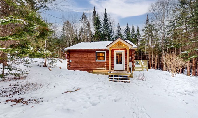 Winter, spring, summer, or fall, a haven for outdoor adventure awaits at this woodland cabin near the shores of Rangeley Lake. It's a quiet and secluded setting, yet also just a short drive from the lake itself, an assortment of great hiking trails, and the world-class slopes of Saddleback Mountain.