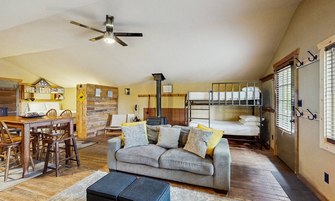 Regardless of how you plan to spend your vacation days, this charming cabin makes an excellent home base for all manner of activities. Stretch out and relax on the couch while you catch up on your reading, or use the compact yet well-appointed kitchen to put together an après-ski snack. The fireplace makes it easy to warm up, while free WiFi lets you stay updated and entertained. This studio-style cabin is great for small groups who don't mind spending time in close quarters.