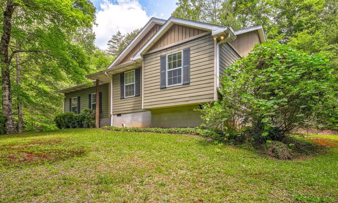 Enjoy a Blue Ridge getaway at this adorable Clayton cottage! Just minutes from town, this cozy two-bedroom home offers a quiet retreat nestled in a peaceful, wooded setting. Take in the clean country air while enjoying morning coffee or glass of locally produced wine on the private deck and fire up the gas grill for a mountain style barbecue with friends and family. After the day's adventures, unwind beside the wood-burning fireplace in the living room and stream shows and movies on the smart TV. The full kitchen comes equipped with all the major appliances and cookware for home-cooking, plus a dishwasher for easy cleanup. Home essentials include free WiFi and a private washer and dryer.
