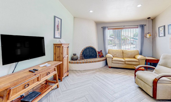 Desert dreaming comes easy at this radiant Tucson home! Nestled near many of the area's amusements, you and yours will enjoy exploring Kennedy Park, the Anselmo Valencia Tori Amphitheatre, the Tucson Museum of Art, and the Tucson Children's Museum. When you want to keep it closer to home, simply lounge and relax in the large, enclosed backyard featuring a covered patio.