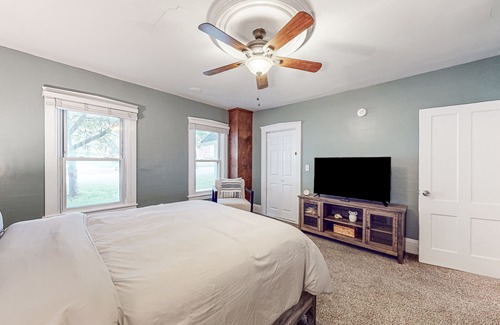 This retreat was completely renovated in 2017 with modern appliances and marble countertops and floors, offering the ultimate vacation experience. When it comes to outdoor living, this retreat enjoys a private back porch that overlooks a spacious rolling backyard, a firepit where you can gather for some storytelling while roasting marshmallows, and yard games. Inside, the living area has carpeted flooring and a smart TV so you can stay up to date with your favorite series and movies during your stay. Free high-speed WiFi makes streaming a breeze as well. Whip up delicious homemade treats in the well-appointed kitchen and be the star of your group!