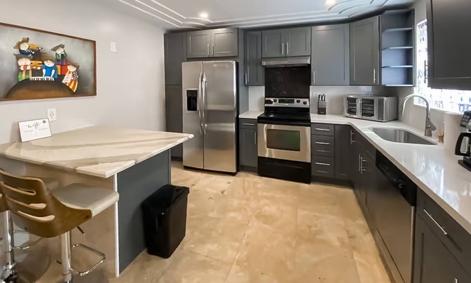 Welcome to your perfect family getaway in sunny West Palm Beach, FL! This charming single-level home is designed with comfort and convenience in mind, making it an ideal retreat for families and pet lovers alike. With no stairs to navigate, everyone can enjoy easy access to all areas of the house, including the spacious living room and well-equipped kitchen.