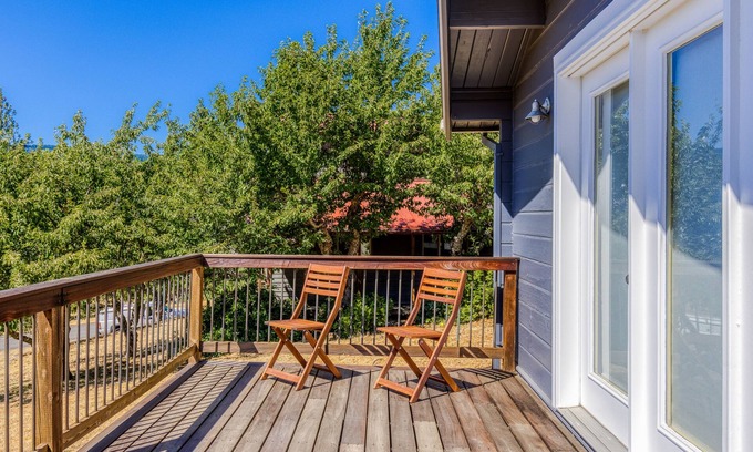 The home itself is part of a larger estate comprised of separate residences throughout the property, but you'll appreciate your own privacy and convenience with standalone features including a full kitchen, central air-conditioning, and free WiFi. The expansive, private deck is designed to showcase the amazing views, and a gas grill is included for epic backyard barbecues. During your visit, you may even be treated to a local wildlife sighting, with deer, coyote, eagles, and hawks all common critters in the area. A toasty wood-burning fireplace provides cozy comfort for casual downtime and three smart TVs provide plenty of in-home entertainment. Family-friendly amenities include a Pack-N-Play and children's games. There's also a cooler provided for picnics and outings. A shared, on-site washer/dryer adds extra convenience during your stay.