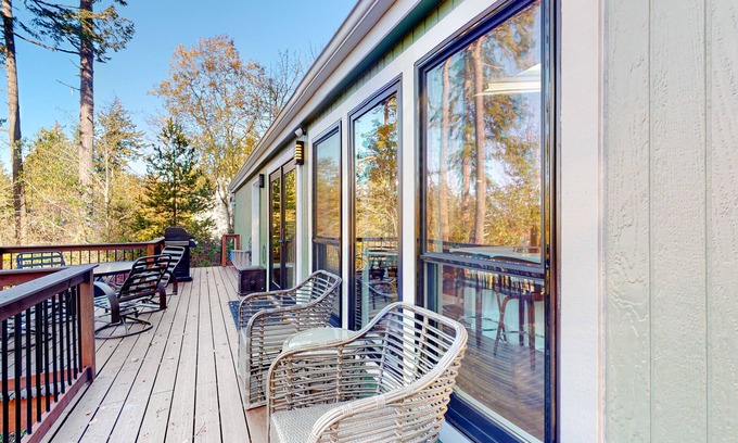 Restful northwest living is yours at Skagit Bay Serenity. Showcasing peek-a-boo water views, this cozy retreat comes fully furnished inside and out for a quiet country escape. The house has a wonderful open feeling and vaulted ceilings, with recent updates including new, luxury vinyl flooring, fresh paint, and countertops. Complete with views of the bay and a brand-new gas grill, the fabulous entertainer's deck is the perfect spot for summer barbecues and outdoor relaxation. Nearby trail access offers a chance to explore the natural splendor of Kukutali Preserve and you can cross the famous Rainbow Bridge into downtown La Conner for a day in town, just two miles from home. You'll be just 11 miles from Anacortes and a short ferry ride to the San Juan Islands or Port Townsend.