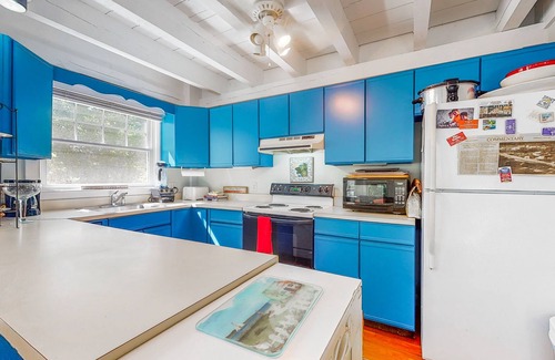 Spend your days at Inkwell Beach, Joseph Sylvia State Beach, or Lighthouse Beach, and be greeted back at home by a lovely, tree-lined yard. There's an outdoor shower to rinse off any lingering salt or sand, as well as a back deck with a gas grill and cushioned seating where you can relax all afternoon.