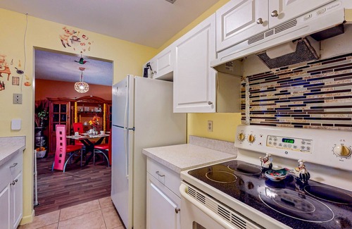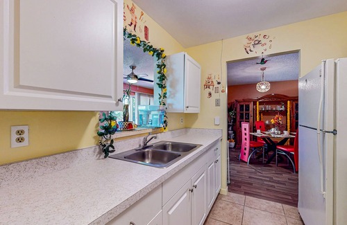 Upon entering this air-conditioned escapade, you will discover a colorful and lively open floor plan. Make yourself at home and spread out comfortably in the large living room area furnished with guests' comfort in mind. The smart TV allows you to stay up to date with your favorite series and host entertaining movie nights! There is a family room equipped with comfy sofas and a second smart TV. Having two distinct living spaces, each equipped with its own TV, offers the advantage of allowing every member of the household to enjoy their preferred programming. Prepare culinary masterpieces in the well-equipped kitchen, complete with all the essentials to channel your inner chef. Outside, the home boasts a covered front patio and an open back patio overlooking the well-maintained yard. Additional perks include a washer/dryer and high-speed WiFi.