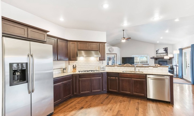 This spacious and private home is perfect for your next family getaway to Northern Idaho! Inside, this home features a modern kitchen with stainless steel appliances and a breakfast bar, a dining room with seating for everyone, and a spacious and open living area with a gas fireplace and a large TV. If you're up for a little friendly competition, play Ping-Pong or foosball. In the evening, relax out on the furnished deck while dinner sizzles away on the gas grill, and then gather around the firepit for storytelling and catching up. And with the fully-enclosed yard, dog pen, and doggy door, your four-legged family member will also have an amazing time here!