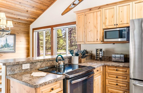 Have the vacation of a lifetime at this two-story Sunriver home with access passes to the abundant on-site amenities, including a seasonal waterpark and lazy river, indoor children's pool, basketball courts, a marina, a nature center and observatory, and 40 miles of paved biking and walking trails, to name a few. Extra activities like miniature golf and ice skating are available depending on the season. T There will truly be something for everyone!