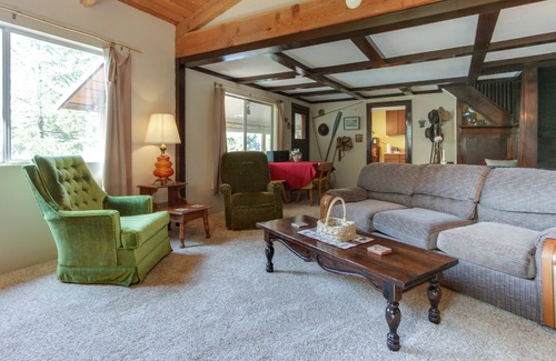 This home is a true cabin in the woods, as it lies on the far east side of Lake Hayden, 30 minutes from the closest town. The lake provides all of the water activities you could wish for, and there are numerous hiking options in the surrounding Coeur d'Alene National Forest. Skiers and snowboarders are within a day trip of both Silver Mountain (51 miles) and Schweitzer (60 miles).