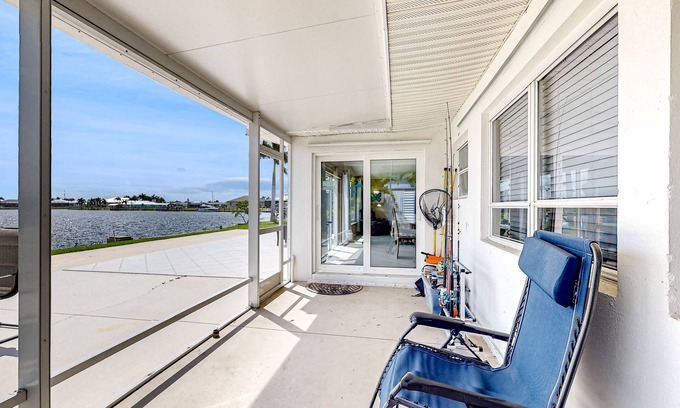 An incredible setting awaits at this lakefront home on the canals of Port Charlotte, where you'll have sweeping views of the water from nearly every room and are only 30 minutes from the Gulf by boat. Bring your morning coffee outside to the patio overlooking the lake, launch the two kayaks from the private dock for a day of fishing, and spend your days basking in the Florida sunshine while catching glimpses of marine life. The best part is fishing gear is provided, so you'll be able to fish whenever you please.