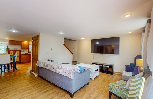 Inside, this lovely home away from home offers an inviting living room where you and your guests can spread out comfortably and enjoy a tranquil yet entertaining evening at home. Take movie nights to a whole other level thanks to the large smart TV with streaming services. Now you can stay up to date with your favorite series, and the free high-speed WiFi will make streaming a breeze. The modern, fully-equipped kitchen has all the essentials you need to whip up delicious homemade treats and meals for everyone. Planning on extending your stay? This retreat features a stacked washer/dryer for your laundry needs! Additional perks include a desk in one of the bedrooms, a gas fireplace, and a whole-house generator.