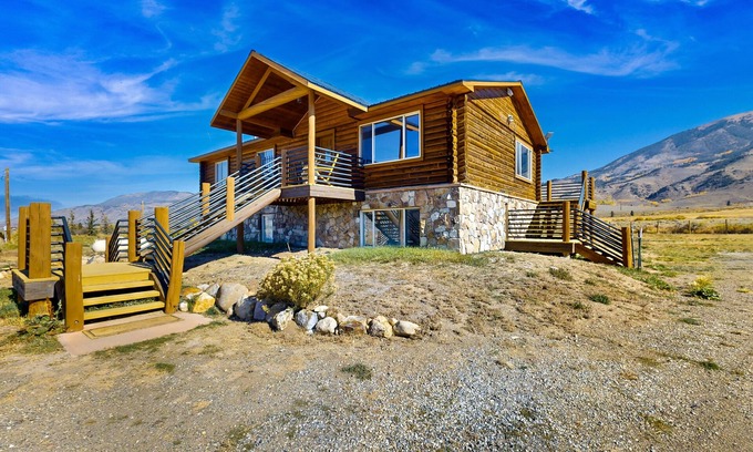 Spectacular mountain views dazzle in this five-bedroom log cabin home. Nestled on two acres of private land between Acorn Creek and the Blue River, guests can escape to fresh, alpine air and gaze into wide-open skies of clear blue. The traditional log structure (outside and in) is sure to charm! Enjoy views of the mountains from almost every window, and enjoy breathing in the fresh air on the balcony under those wide open skies. The location is a short drive to many of Colorado’s finest mountain activities including skiing, riding, hiking, fishing, hunting, paddling, boating, snowmobiling, tubing, disc golf, attending outdoor concerts, and shopping at the Silverthorne outlets! And there’s plenty of parking spaces for your group (with extra pull-through space for your favorite outdoor toys - RV’s, ATVs, boats, among others).