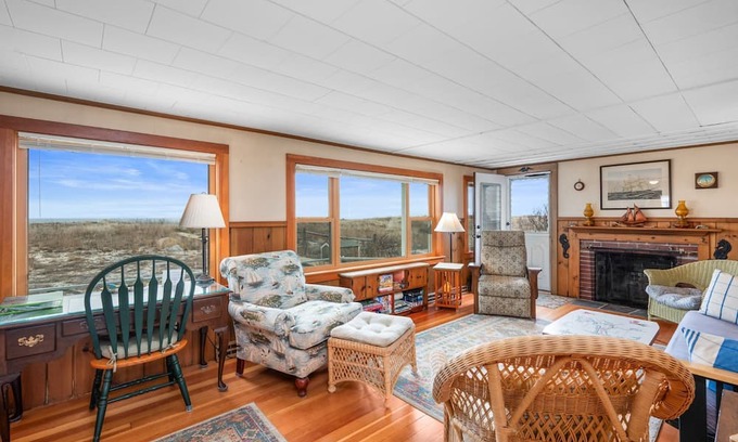 Nestled on the dunes, this dog-friendly cottage boasts panoramic views of Sagamore Beach. With central air conditioning for added comfort, come relax and unwind with your pet in style.