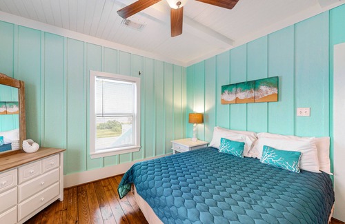 When you're not exploring the island, you'll love spending your leisure time at this unique, family-friendly retreat. Beautiful hardwood floors create a cool, comfortable place to relax while watching TV or surfing the free WiFi. Pick up some fresh fish from the market and fix yourself a delicious seafood dinner in the fully equipped kitchen, then head downstairs to the covered mezzanine to dine in the open air as the ocean sparkles in the distance. For a small fee, you can even bring your canine friends along to join in the fun too! (Two dogs max, please.)