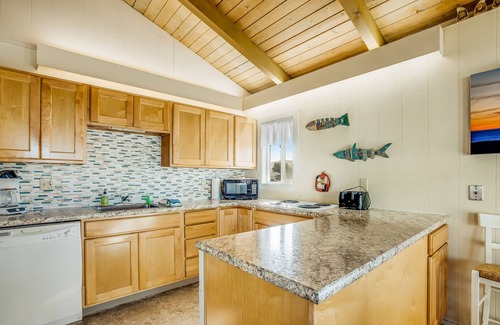 Steps away from the picturesque shores of the Oregon Coast, this dog-friendly Newport escape gives you a place to unwind in peace and beauty. Comprised of two separate living spaces that can be rented separately, room for up to 8 guests, and a central location near a variety of activities, you won't have to go far for fun. Two dogs are also welcome and allowed only in the lower level of the home.