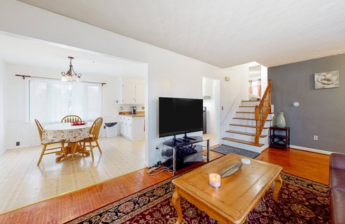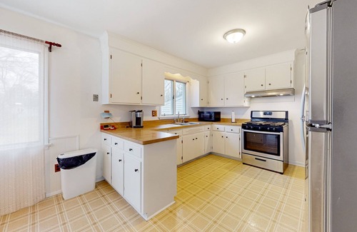 Bordering Lake Ontario, Rochester is known for its lively arts and cultural scene, unique cuisine, and seasonal festivals. Close to both the University of Rochester and Rochester Institute of Technology, your stay is perched in a pleasant neighborhood just outside the city center, offering a place of pure peace. When you aren't taking serene walks around Highland Park or tuning into a live performance at the Eastman Theater, get cozy in front of the living room's large TV. When you decide to dine in, the well-equipped kitchen boasts all of the essentials needed to prepare delicious dishes. Off this space, you'll also have access to a separate laundry area. Central air-conditioning and internet are also available for your use inside.