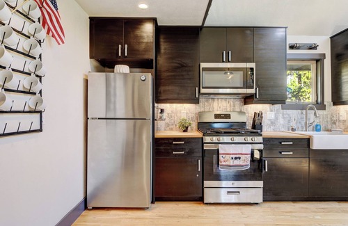 Step into this beautifully renovated gem that blends modern farmhouse vibes with luxurious finishes. Upstairs, a cozy bunk room with four twin beds beckons the little ones, while the stunning bathroom—complete with a steam shower and double vanity—adds a touch of spa-like indulgence. Gather in the expansive chill space for movie nights or board games around the table. If you need a quiet corner to work, there's a dedicated workspace with a pullout queen bed for extra guests.