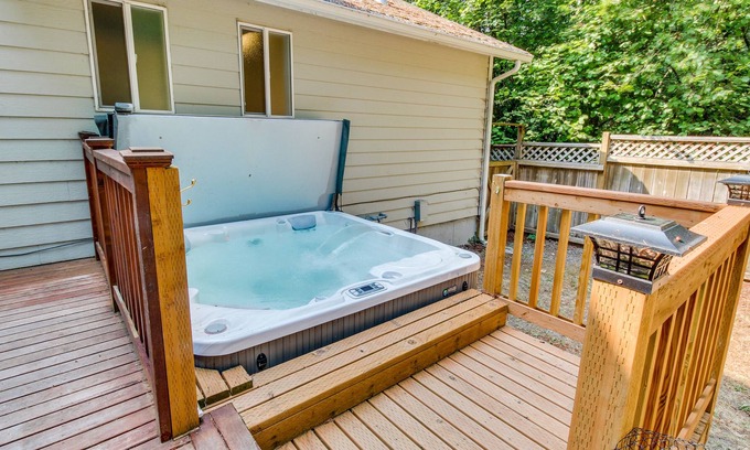 Enjoy the incredible location of this beautiful dog-friendly home in Vashon. This home is located in a quiet neighborhood and features a fenced-in backyard with a large deck, private hot tub, a wooden swing set for the kids - it's ideal for families! This home, which is also within walking distance to the beach, is ready-made for group getaways, large families, or family reunions!