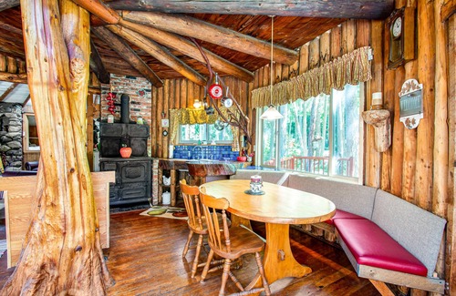 Get off the grid and experience the Olympic Peninsula in truly unique style at this one-of-a-kind cabin in Sequim. With natural logs and handcrafted details at every turn, this home is the treehouse you always dreamed of come to life.