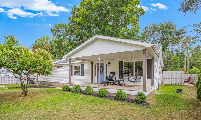Dog-friendly, updated home with deck, front porch, fire pit, WiFi, & fireplace is located in Paw Paw Lake. Dog-friendly, updated home with deck, front porch, fire pit, WiFi, & fireplace provides accommodation, featuring TV, Bedding/Linens, Child Friendly, among other amenities. This House features TV, Bedding/Linens, Child Friendly, to make your stay a comfortable one.