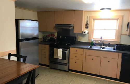 Miners cottage in the heart of Galena Historic district. 3 bedroom, 2 bathroom. The master has a king size bed with a TV. The main floor bedroom has a double bed with a TV. And the upstairs "kids" room has two extra long twin beds with a TV. The kitchen is large and well appointed with plenty of equipment. Large dining area with seating for six. Dog friendly with a 1/3 acre yard to play in. On site front loader washer & dryer. Walk to downtown or through the beautiful historic neighborhood and the pet friendly park adjacent to Galena's oldest Cemetery. Free wifi.
