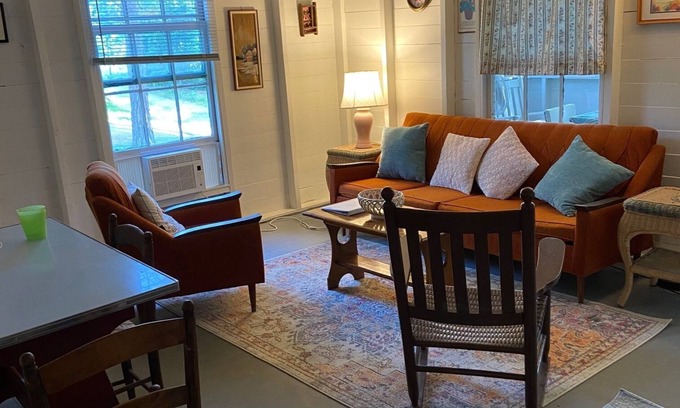 Are you looking for a dog friendly summer vacation? Terra Alta Cottages is a tranquil retreat located in Schroon Lake NY at the foothills of the High Peaks of the Adirondack Mountains. It has been a summer destination since the 1930s and has been owned and operated by three generations of the Starfield Family since the mid-1950s. Spend a week or a month enjoying tennis, kayaking, hiking, playing pickleball or just relaxing by the lake or on your own screened-in porch. The property has 2 tennis courts (one with pickleball lines), hiking, boating, and a lakefront supervised by a Red Cross certified lifeguard. Cottage has ceiling fans in every room, one A/C Unit and strong Wi-Fi (>150 mbps).