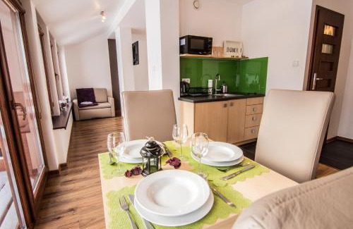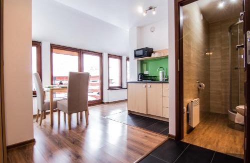 Dolina Resort Zakopane enjoys a location in Kościelisko, 5.3 miles from Zakopane Aqua Park and 6.3 miles from Tatra National Park. With free private parking, the property is 4.7 miles from Gubalowka Mountain Train Station and 4.9 miles from Zakopane Railway Station. The apartment has private entrance. All units comprise a seating area with a sofa bed, a dining area, and a fully equipped kitchenette with various cooking facilities, including a microwave, a fridge, a stovetop, and kitchenware. Each room comes with a kettle, a private bathroom, and free Wifi, while certain rooms will provide you with a terrace and some have garden views. At the apartment complex, each unit comes with bed linen and towels. Guests at the apartment will be able to enjoy activities in and around Kościelisko, like skiing. A children's playground is also available for guests at Dolina Resort Zakopane. Kasprowy Wierch Mountain is 13 miles from the accommodation, while Bania Thermal Baths is 18 miles away.