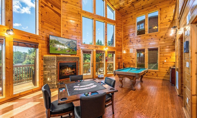 - New Listing! Indoor Private Heated Pool, Less than 2 miles from Dollywood, Walk to Parkway, 4 Ensuite Bedrooms Sleeps 14, Dog Friendly, Game Room with TV, Arcade and Foosball, Hot Tub, BBQ, Smart TV and Wifi, Fully Loaded Kitchen, Washer and Dryer