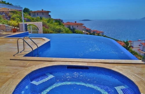 DOLPHIN BAY VILLA, STUNNING, LARGE PRIVATE INFINITY POOL + JACUZZI, SLEEPS 8 is located in Kas. DOLPHIN BAY VILLA, STUNNING, LARGE PRIVATE INFINITY POOL + JACUZZI, SLEEPS 8 provides accommodation, featuring Ocean View, Fireplace/Heating, Laundry, among other amenities. This Villa features Ocean View, Fireplace/Heating, Laundry, to make your stay a comfortable one.
