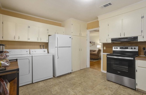 This is a cozy 1930s home with plenty of room for your family. You'll have the whole home except one locked supply closet. Furnished with a King Bed in one bedroom and a Queen bed in the other. There is also a Daybed with trundle (1 Full, 1 Twin) in the sunroom. This is a great space for 2 children to sleep. MAXIMUM occupancy is 6 people, including children and infants. A tankless water heater insures everyone will get a hot shower. Our home is completely sanitized between each guest. You'll have exclusive use of the backyard, patio table with seating.