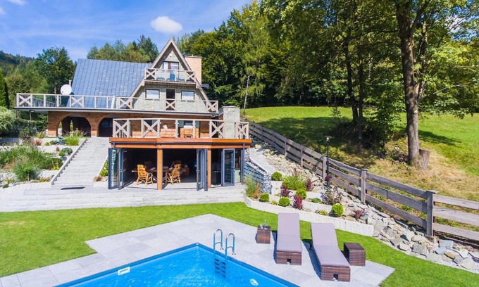 Best-rates for the Dom Beskidy starts from $488 per night with includes Pool, TV, Balcony/Terrace, Sports/Activities, Guest Services, Barbecue/Outdoor Cooking, Child Friendly, Hot Tub, Parking, Bar, Kitchen, Wellness Facilities, View, Ocean View, Security/Safety, Skiing, Entertainment, Internet, Laundry, Air Conditioner, Oceanfront, Accessibility, Fireplace/Heating StayAndPlay offers fully equipped golf villas, golf hotels, golf resorts, luxury golf cabins, and exclusive golf retreats, making it easier than ever to find your perfect golf escape — ideal for families, peaceful getaways, or pet-friendly retreats with the whole crew.
